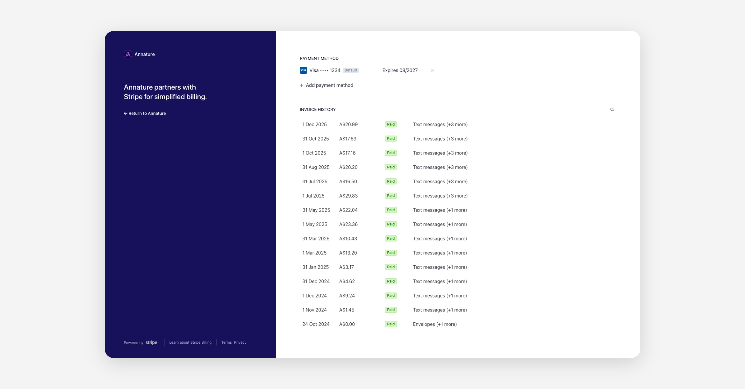 If you need to review past payments, download invoices for your records, or track your billing history, you can do so directly from your Billing settings.
