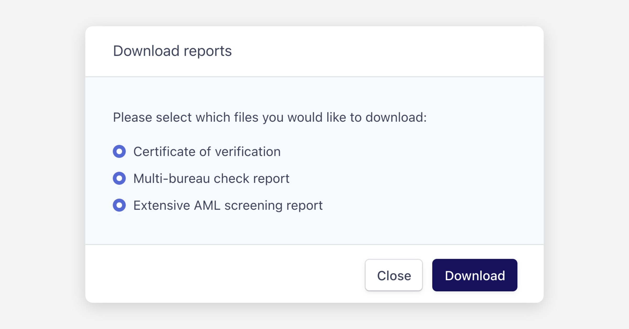 Select the reports you want to download, then click Download.