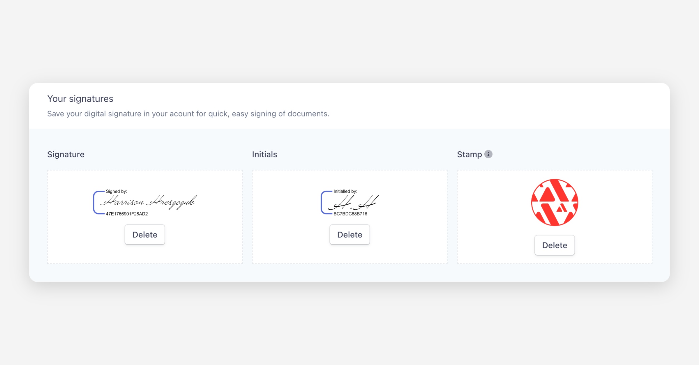 Scroll down to Your signatures.