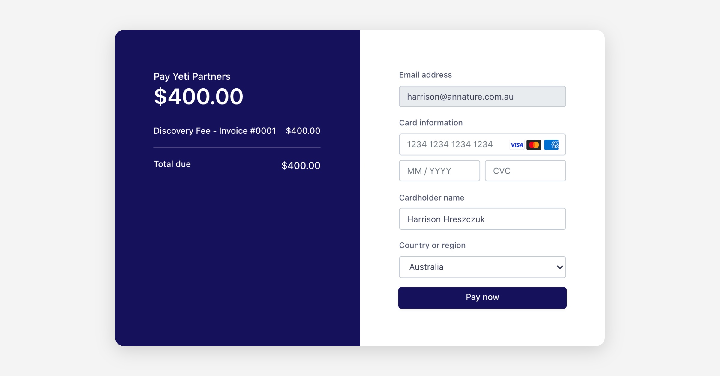 Amount due (AUD) — The amount to charge.