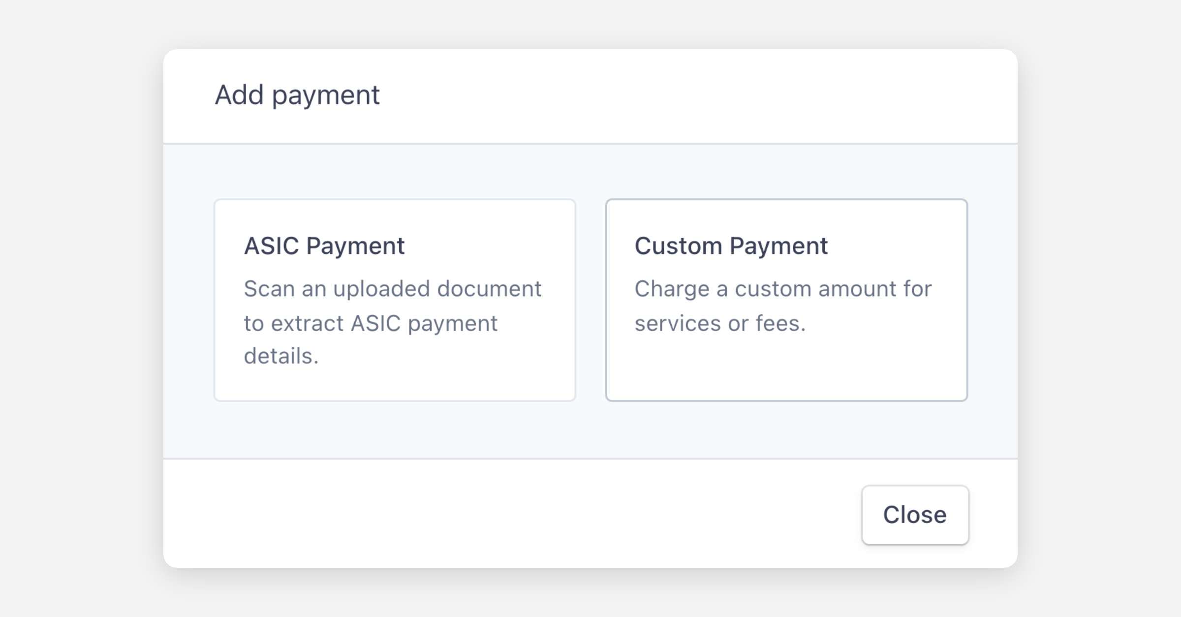 Your organisation must complete the Payments Registration process before Custom Payments become available. Once approved, Custom Payment will appear as an option whenever you add a payment to an envelope. Learn more here.