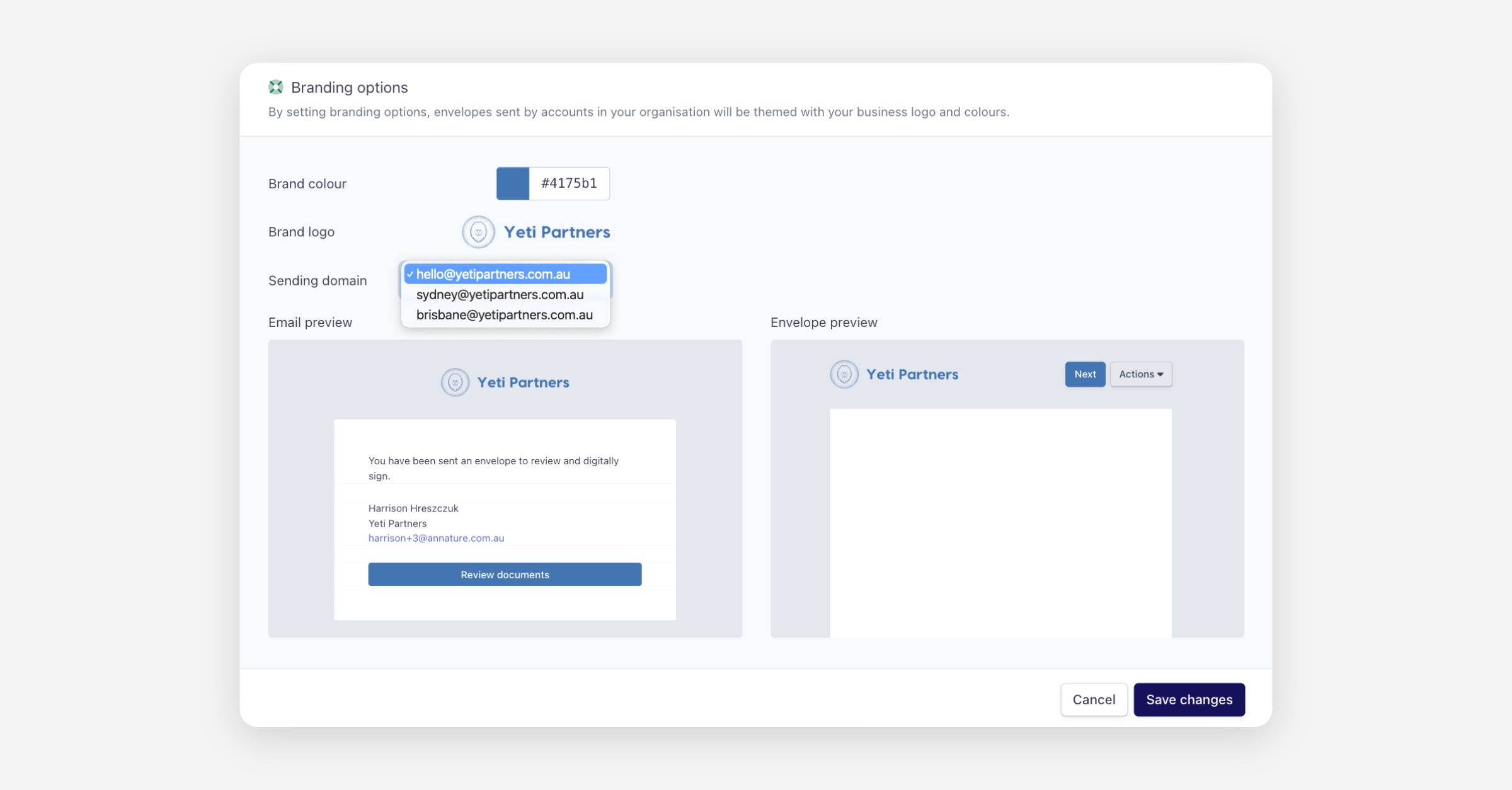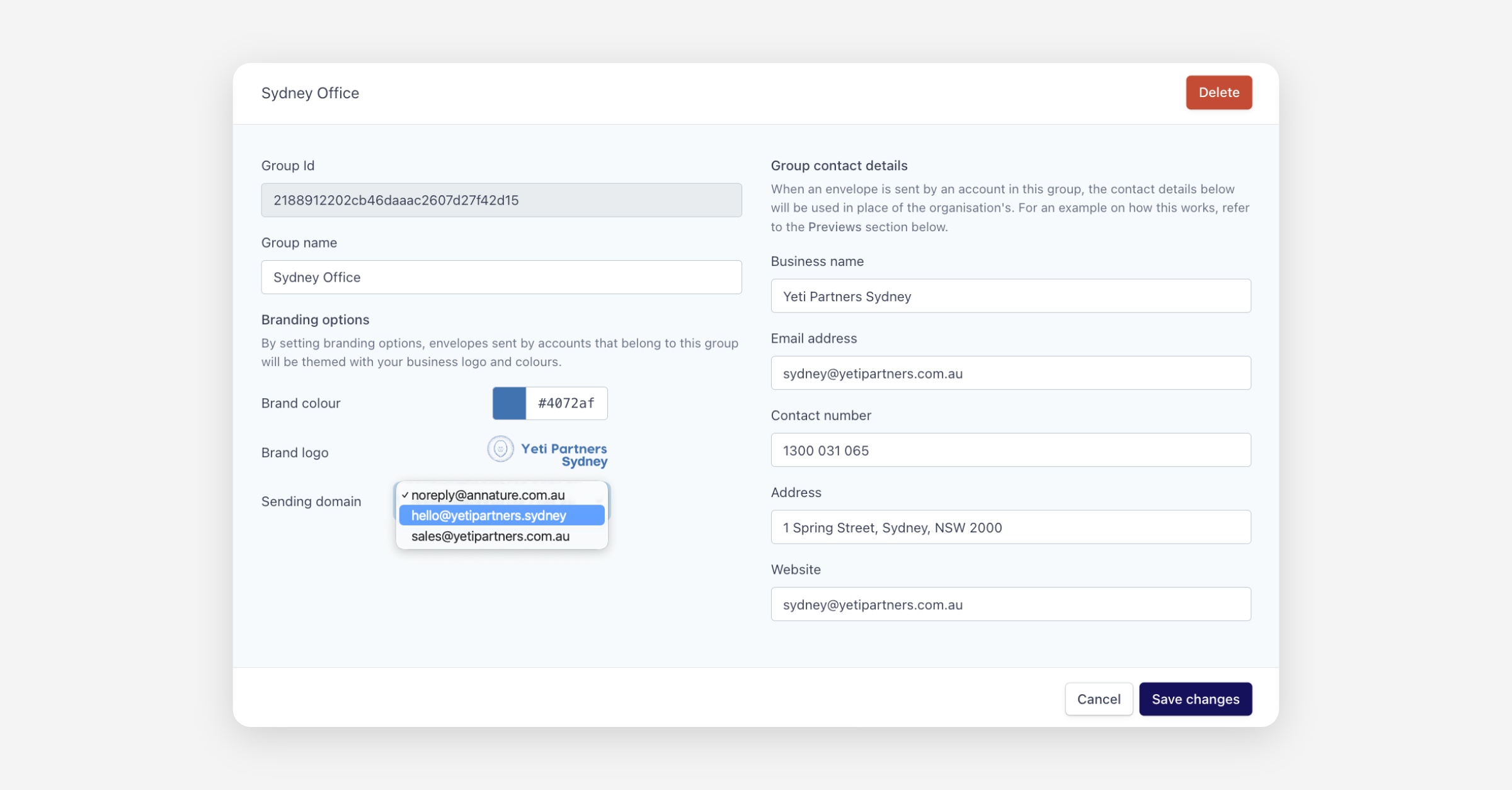 Once assigned, all envelopes sent from your organisation or the selected group will come from your custom email domain.