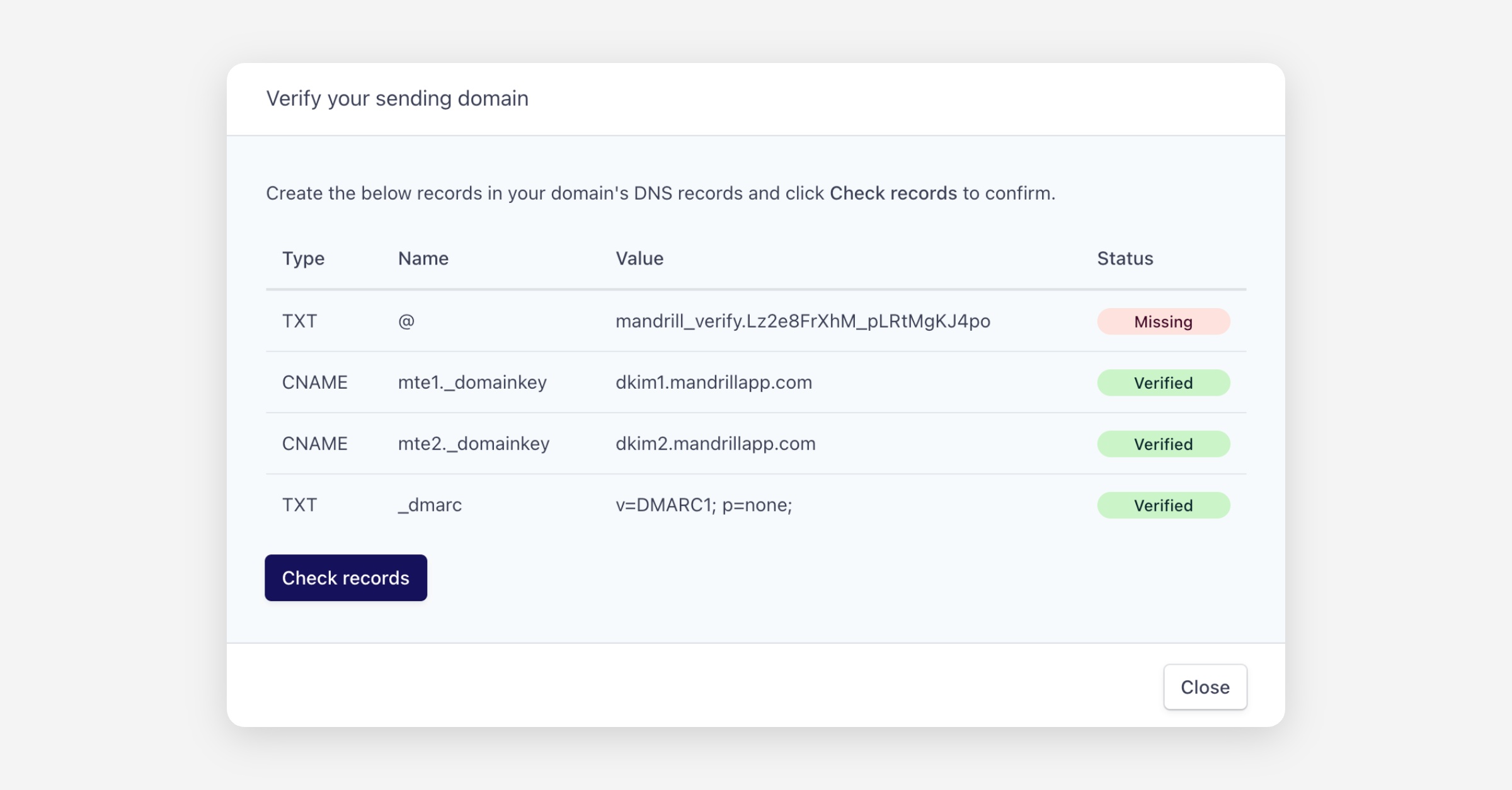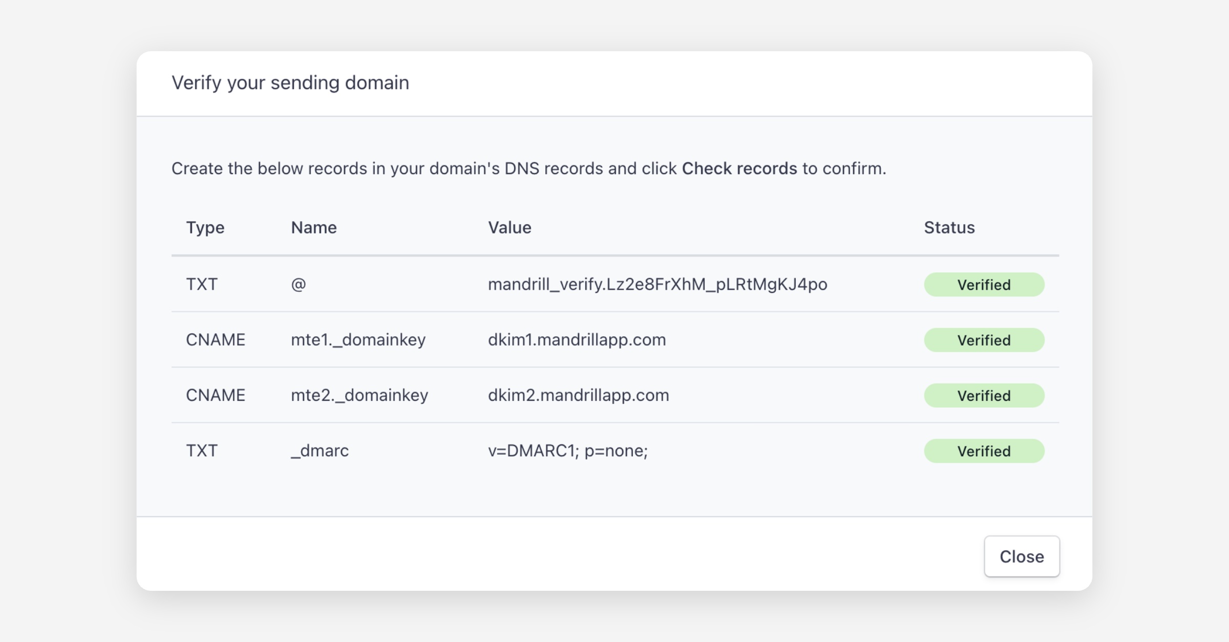 You will see a list of DNS records that must be added to your domain's DNS settings.