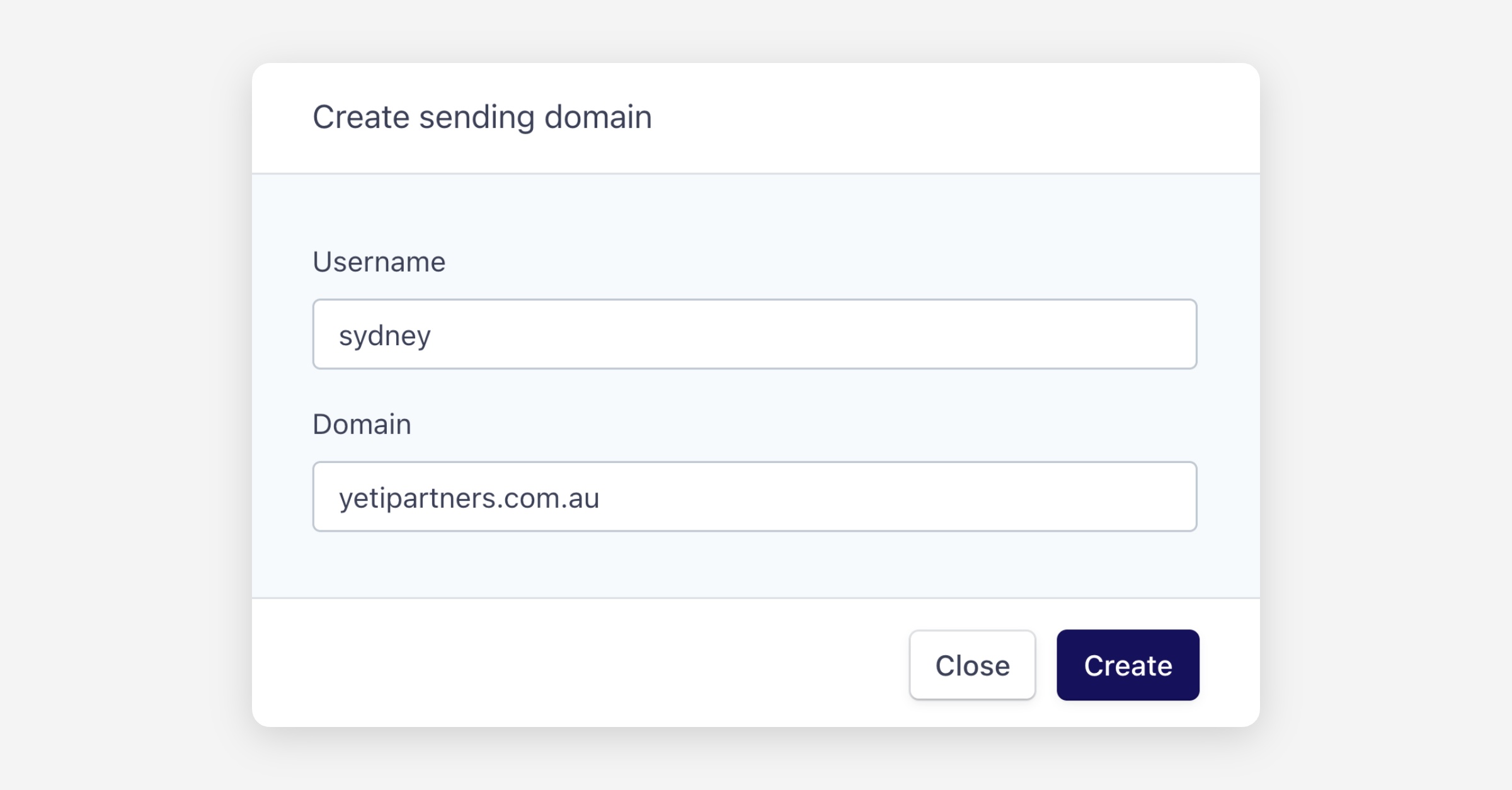 Your new domain will appear in the Sending Domains list. Continue to the next step to verify ownership.