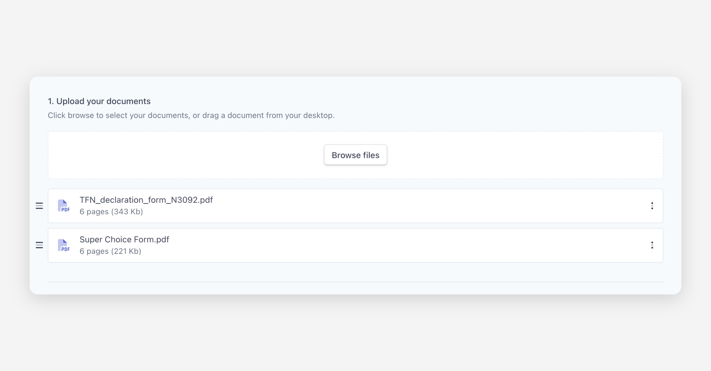 Click Browse files or drag and drop documents from your desktop. Annature supports PDF & DOCX files.