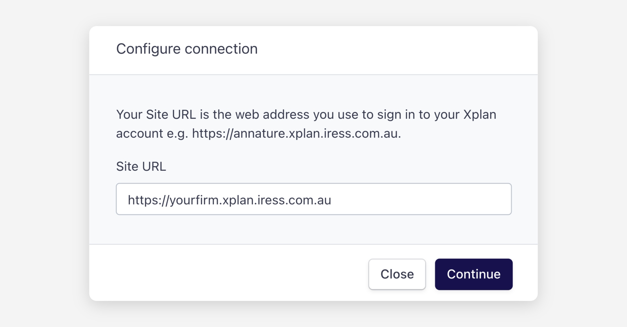 Enter your Xplan site URL (e.g. https://yourfirm.xplan.iress.com.au).