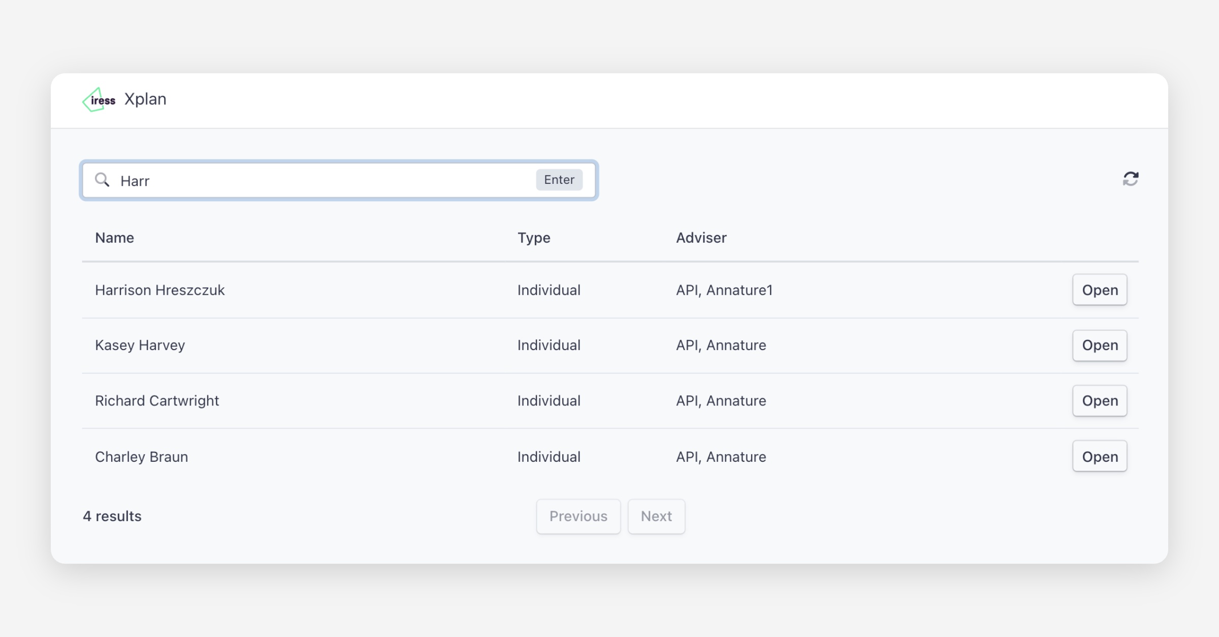 On the Xplan integration page, click Open beside the client.
