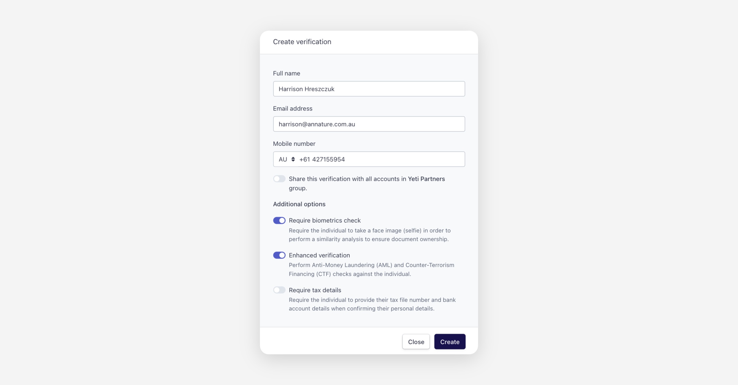 Under Identity verification, click Create verification.